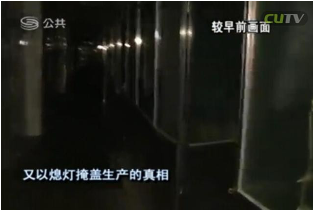 在突擊檢查中,首先遭到了保安的阻擾拖延,進(jìn)入到廠房后,工人們又以熄燈掩蓋生產(chǎn)的真相。