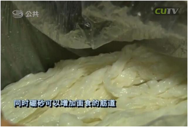據(jù)了解,硼砂是一種易溶于水的工業(yè)原料,因毒性較高,廣泛用于殺菌殺蟲劑的生產(chǎn)。人體過多食用后,會引起多臟器的蓄積性中毒。同時,硼砂可以增加面食的筋道,因此成為黑心廠商的違法添加物。目前,食品廠法人以及相關(guān)負(fù)責(zé)人已被刑拘。