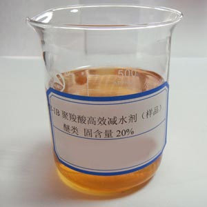 外觀形態(tài)分為水劑和粉劑。水劑含固量一般有20%,40%(又稱母液),60%,粉劑含固量一般為98%。根據(jù)減水劑減水及增強能力,分為普通減水劑(又稱塑化劑,減水率不小于8%,以木質(zhì)素磺酸鹽類為代表[2] )、高效減水劑(又稱超塑化劑,減水率不小于14%,包括萘系、密胺系、氨基磺酸鹽系、脂肪族系等[2] )和高性能減水劑(減水率不小于25%,以聚羧酸系減水劑為代表[2] ),并又分別分為早強型、標(biāo)準(zhǔn)型和緩凝型。